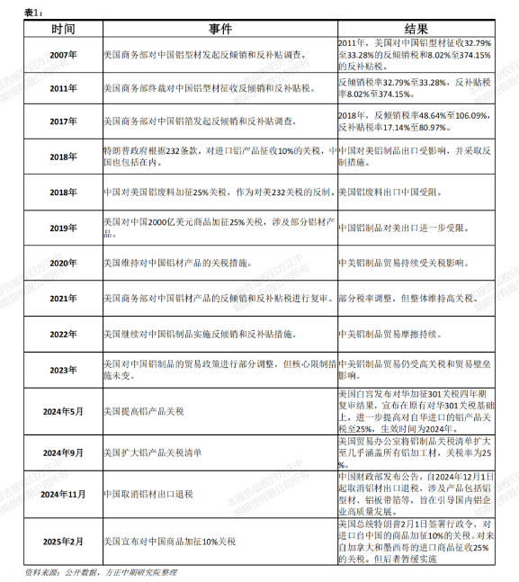起首,特朗普正在2025年2月1日签订的行政号令中,颁布发表对所有自中国进口的商品加征10%的赏罚性关税,这一政策间接影响了我国铝材对美国的出口。因为关税的添加,我国铝材正在美国市场的合作力下降,将间接导致出口量削减。