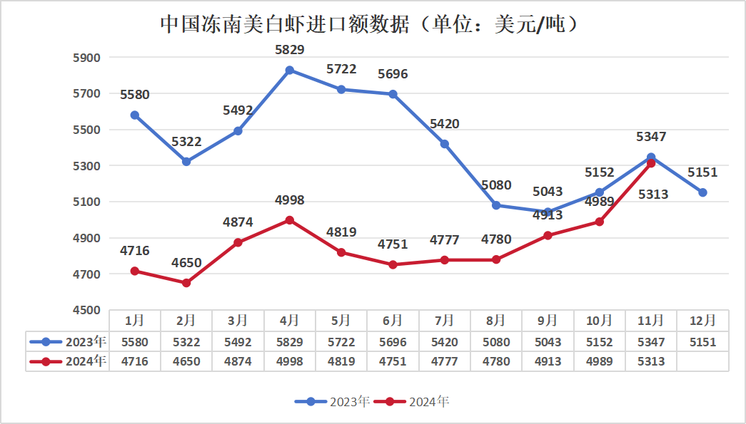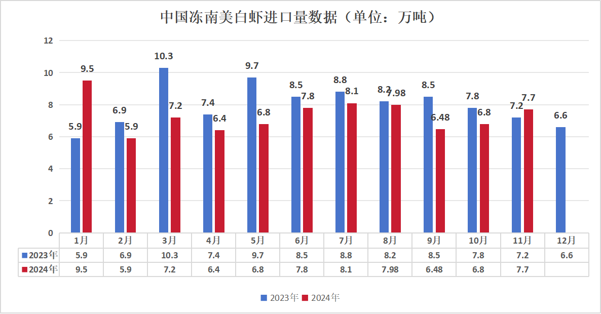 据海关总署统计,本年11月,我国进口冷冻南美白虾的平均单价曾经上涨至5313美元/吨,环比增加6。49%,创下了年度新高。截至2024年目前,我国进口冷冻南美白虾的商业伙伴已扩展至23个国度和地域。此中,厄瓜多尔仍然是我国最大的供应国,本年前11月从该国进口的冷冻南美白虾占比高达75。32%。紧随其后的是印度和阿根廷。跟着春节的临近,部门北方市场的白虾销量曾经起头有较着动货迹象,按照我们察看,这将预示着旺季的空气正日益临近,据领会,某些备有20/30如许稀缺规格的白虾进口商,曾经起头预备提价出货,而另一方面,据市场反馈,部门库存程度较低的客户也曾经正在起头积极备货,他们认为当前的价钱属于相对低位,此时是提前上逛经销商备货以待春节下逛端发卖高峰的优良机会。