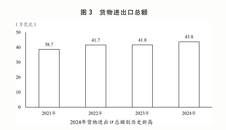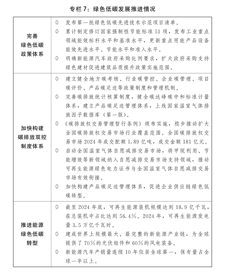 一是高质量共建“一带一”成效显著。成功召开第四次“一带一”扶植工做座谈会。共建“一带一”高质量成长八项步履沉点使命成功推进,对共建“一带一”国度进出口总额增加6。4%,占我国进出口总额的比沉初次跨越50%。取巴西、非盟等23个国度和国际组织签订共建“一带一”合做规划。2024年中非合做论坛峰会成功举办。高质量举办首届中国-海合会国度财产取投资合做论坛、大湄公河次流域经济合做第八次带领人会议。统筹严沉标记性工程和“小而美”平易近生项目扶植取得主要进展。中吉乌铁举行项目启动典礼,中老铁、雅万高铁平安不变运营,中巴经济走廊“升级版”扶植稳步推进,东线天然气管道全线提前建成、满输运转。中泰铁、匈塞铁扶植取得新,中越跨境尺度轨铁取得积极进展,中欧跨里海中转快运开通。鲁班工坊、菌草手艺、“丝一家亲”等平易近生项目结实推进。中欧班列不变畅达运转,结构扶植一批中欧班列集结核心,全年开行1。94万列,累计开行冲破10万列,灵通欧洲26个国度229个城市。“丝海运”定名航路个口岸,空中丝绸之通航56个国度107个城市。积极成长“丝电商”,取塔吉克斯坦、巴林等33个国度成立双边电商合做机制。二是外贸出口对经济增加贡献增大。出台关于推进外贸不变增加、拓展跨境电商出口推进海外仓扶植、鞭策办事商业和数字商业成长的政策,货色和办事净出口对经济增加的贡献率达30。3%。进博会、广交会、服贸会、投洽会、博览会等严沉展会成功举办。出台结实推进高程度对外更鼎力度吸引和操纵外资步履方案。发布外商投资准入出格办理办法(负面清单)(2024年版),制制业范畴外资准入办法全面打消。推进办事业扩大分析试点示范,开展增值电信、生物手艺、独资病院试点。发布实施全国版和自贸试验区版跨境办事商业负面清单。推出第八批标记性严沉外资项目。健全境外投资办理办事系统。三是平台感化更好阐扬。加强全国各类平台统筹规划结构。实施商业试验区提拔计谋,22个自贸试验区进出口额达到8。45万亿元。加速推进跨境电商分析试验区扶植,区内企业跨境电商商业规模占全国比沉跨越95%。海关特殊监管区域全年实现进出口额8。37万亿元,增加4。6%。出台浙江省义乌市深化国际商业分析总体方案、支撑姑苏工业园区深化立异分析试验的若干办法。设立延吉-长白沉点开辟试验区,持续鞭策长吉图开辟先导区扶植,《(大乌苏里岛)结合开辟规划》正式签订,深化面向东北亚合做。西部陆海新通道辐射范畴拓展至125个国度和地域的542个口岸。四是多双边经贸合做持续深化。果断多边商业体系体例,积极鞭策世贸组织,鞭策告竣投资便当化协定、电子商务协定。全面高质量实施《区域全面经济伙伴关系协定》。积极鞭策我国插手《数字经济伙伴关系协定》《全面取前进跨承平洋伙伴关系协定》历程。正在二十国集团、金砖国度、亚太经合组织等多边区域机制下,鞭策各方环绕商业投资化便当化、商业数字化、供应链互联互通、可持续成长等告竣多份文件。实施取尼加拉瓜、厄瓜多尔、塞尔维亚的自贸协定,取新加坡的自贸协定进一步升级议定书。签订取白俄罗斯的办事商业和投资协定,取秘鲁的自贸协定升级议定书。中国-东盟商业区3。0版构和本色性完成。(七)统筹推进新型城镇化和村落全面复兴,城乡融合成长取得新进展。印发实施以报酬本的新型城镇化计谋五年步履打算、村落全面复兴规划和加速扶植农业强国规划,城乡成长协调性持续加强。一是脱贫攻对峙续巩固拓展。持续健全完美防止返贫致贫动态监测和帮扶机制。用好工具部协做、定点帮扶机制,沉点区域帮扶成效较着。推进帮扶财产高质量成长,832个脱贫县从导财产总产值跨越1。7万亿元。开展支撑易地搬家安设区可持续成长专项步履,易地搬家脱贫劳动力就业率跨越95%。鼎力实施以工代赈,全年吸纳330多万名低收入群众务工就业。深切实施防止返贫就业攻坚步履,脱贫生齿务工规模跨越3300万人。开展消费帮扶“新春步履”“金秋步履”,鞭策成立产销对接关系和财产协做系统,全年消费帮扶总额超4500亿元。二是现代村落财产成长程度稳步提拔。粮食总产量再创汗青新高,初次跃上1。4万亿斤新台阶。“菜篮子”产物供给丰裕。深切践行大食物不雅,粮经饲统筹、农林牧渔连系、动物动物微生物并举的多元化食物供给系统加速建立。加速实施农业严沉科技立异项目,农机配备补短板步履取得新冲破。支撑农村财产融合成长,农产物加工业效益改善,村落旅逛和特色文化财产富平易近感化日益显著。新型农业运营从体提质增效,109。4万个运营性从体年办事面积跨越21。4亿亩次。三是村落扶植取得新成效。进修使用“万万工程”经验,加速推进宜居宜业和美村落扶植,落实农村人居整治提拔五年步履方案、村落扶植步履实施方案、金融支撑村落全面复兴专项步履。全国农村自来水普及率达到94%,规模化供水工程笼盖农村生齿比例达到65%。健全农村糊口垃圾收运措置系统,支撑各地因地制宜选择合适的改厕模式,分类梯次推进糊口污水管理,全国糊口垃圾获得收运处置的行政村比例不变正在90%以上,农村卫生茅厕普及率达75%摆布,农村糊口污水管理(管控)率达45%以上。深切推进农村客货邮融合成长。农村养老办事系