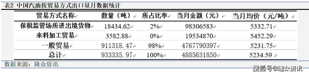 2025年3月,中国汽油出口量按商业体例统计,一般商业、进料加工商业、边境小额商业、保税监管场合进出境货色,该商业体例出口量之和为93。3万吨。此中,一般商业体量占比98%。