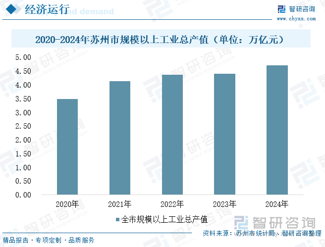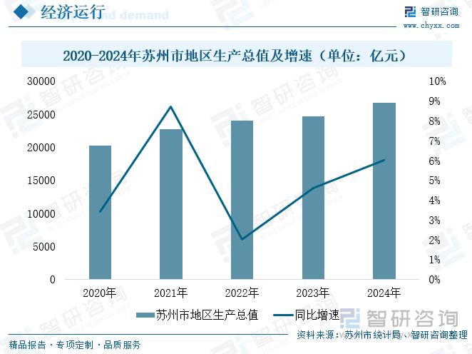 做为国内工业体量最大、配套最全、垂曲整合能力最强的城市之一,姑苏市经济总量和增速持久位居全国前列,展示出强劲的成长韧性。数据显示,2020-2024年姑苏市地域出产总值连结不变增加。此中,按照全省地域出产总值同一核算成果,2024年全市实现地域出产总值26727。0亿元,按不变价钱计较,同比增加6。0%,增速高于全国平均程度。