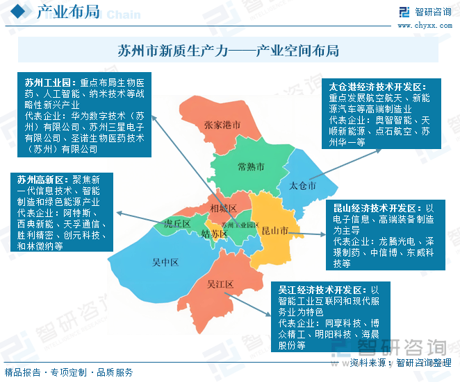 姑苏市正在财产空间结构上,通过“一核多极、多点联动”的空间结构策略,鞭策新质出产力财产正在全市范畴内的协调成长。此中,“一核”是指姑苏工业园,姑苏工业园区是姑苏市新质出产力成长的焦点区域,沉点结构生物医药、人工智能、纳米手艺等计谋性新兴财产。园区内集聚了浩繁高端立异资本和龙头企业,构成了以科技立异为引领的财产生态。“多极”指多个财产集聚区,次要包罗姑苏高新区、昆山经济手艺开辟区、太仓港经济手艺开辟区和吴江经济手艺开辟区等。