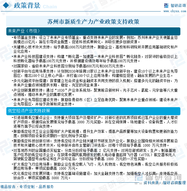 此外,姑苏市高度注沉将来财产及低空经济财产成长,将其做为培育新质出产力的主要抓手,通过政策指导和资本倾斜,鞭策相关财产快速成长。具体行动包罗:姑苏市设立了将来财产专项基金,沉点支撑将来财产的孵化和成长。例如,姑苏将来财产基金总规模达15亿元,旨正在指导社会本钱设置装备摆设、推进科技,并吸引更多高端立异资本集聚姑苏,为将来财产成长注入强劲动力。姑苏市通过政策激励,鼎力引进和培育低空经济范畴的沉点企业。对新引进的优良项目或已落户企业的严沉增资扩产项目,按照分析成长环境赐与最高3000万元的励,激励企业加大投资力度。正在空间保障、场地扶植、设备购买、人才引进等方面供给全方位支撑,为企业成长营制优良。姑苏市通过政策指导和资本整合,鞭策低空经济财产链上下逛企业集聚,构成协同成长的财产集群,为低空经济财产的规模化、高端化成长奠基根本。