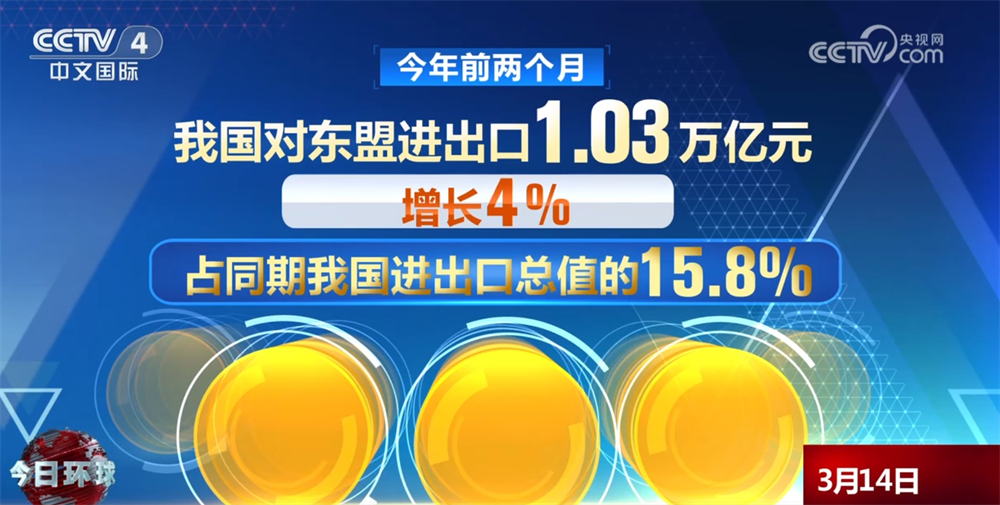截至客岁,东盟已持续5年连结中国第一大商业伙伴地位。本年前两个月,东盟取中国货色商业进出口延续了这一趋向,继续连结中国第一大商业伙伴地位。本年前两个月,我国对东盟进出口1。03万亿元,增加4%,占同期我国进出口总值的15。8%。